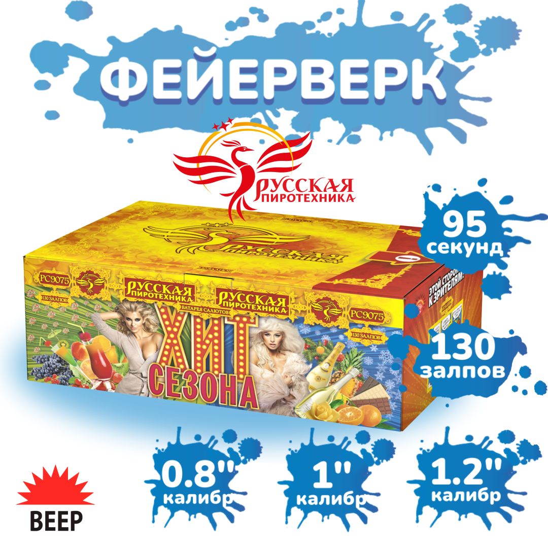 "Хит сезона" - это мощнейший разнокалиберный фейерверк от "Русской пиротехники" не нуждающийся в дополнительном описании!Подойдет для масштабных мероприятий.Эффекты (изображены на картинке):