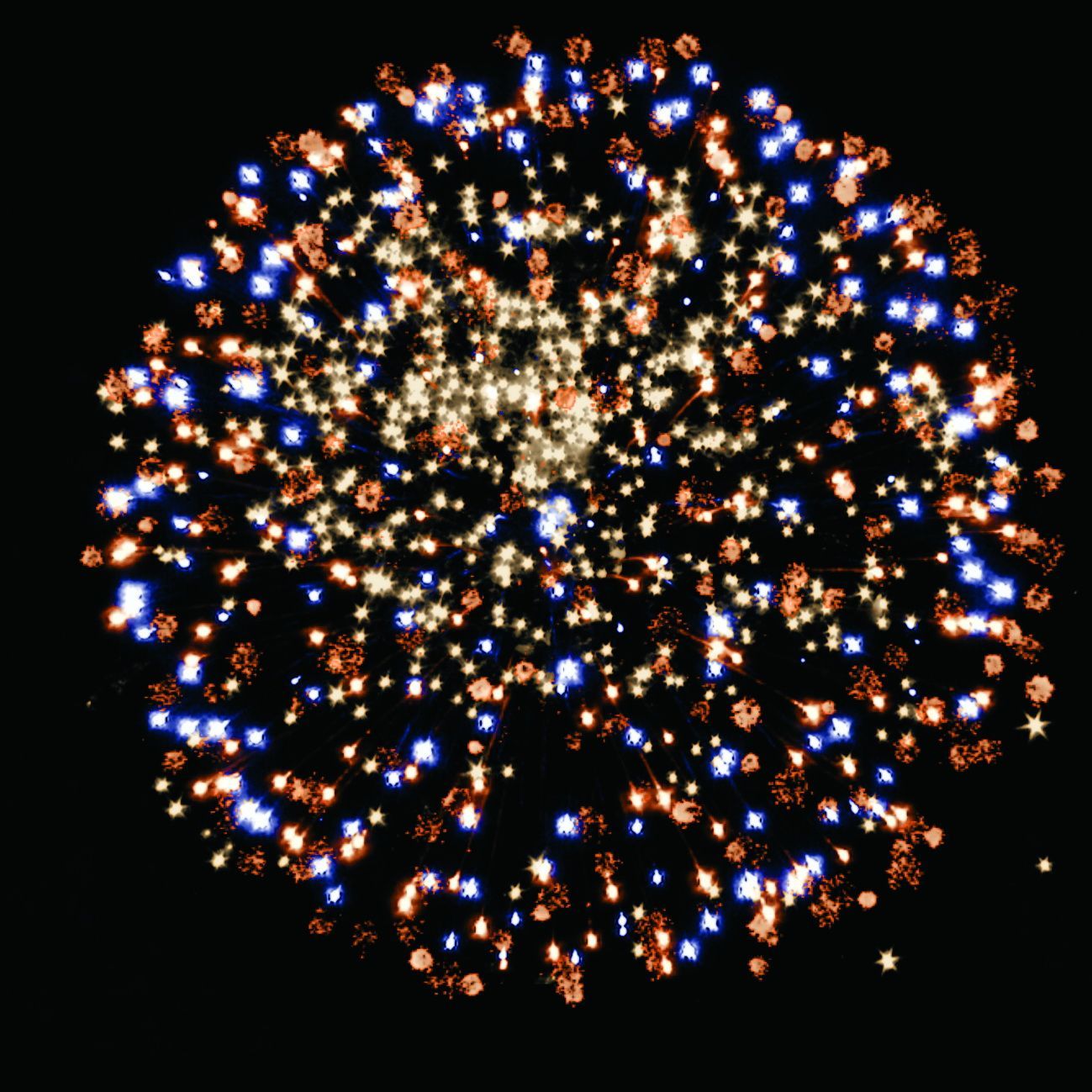 8. Веер. Золотые искристые трассы, множество трещащих сфер.