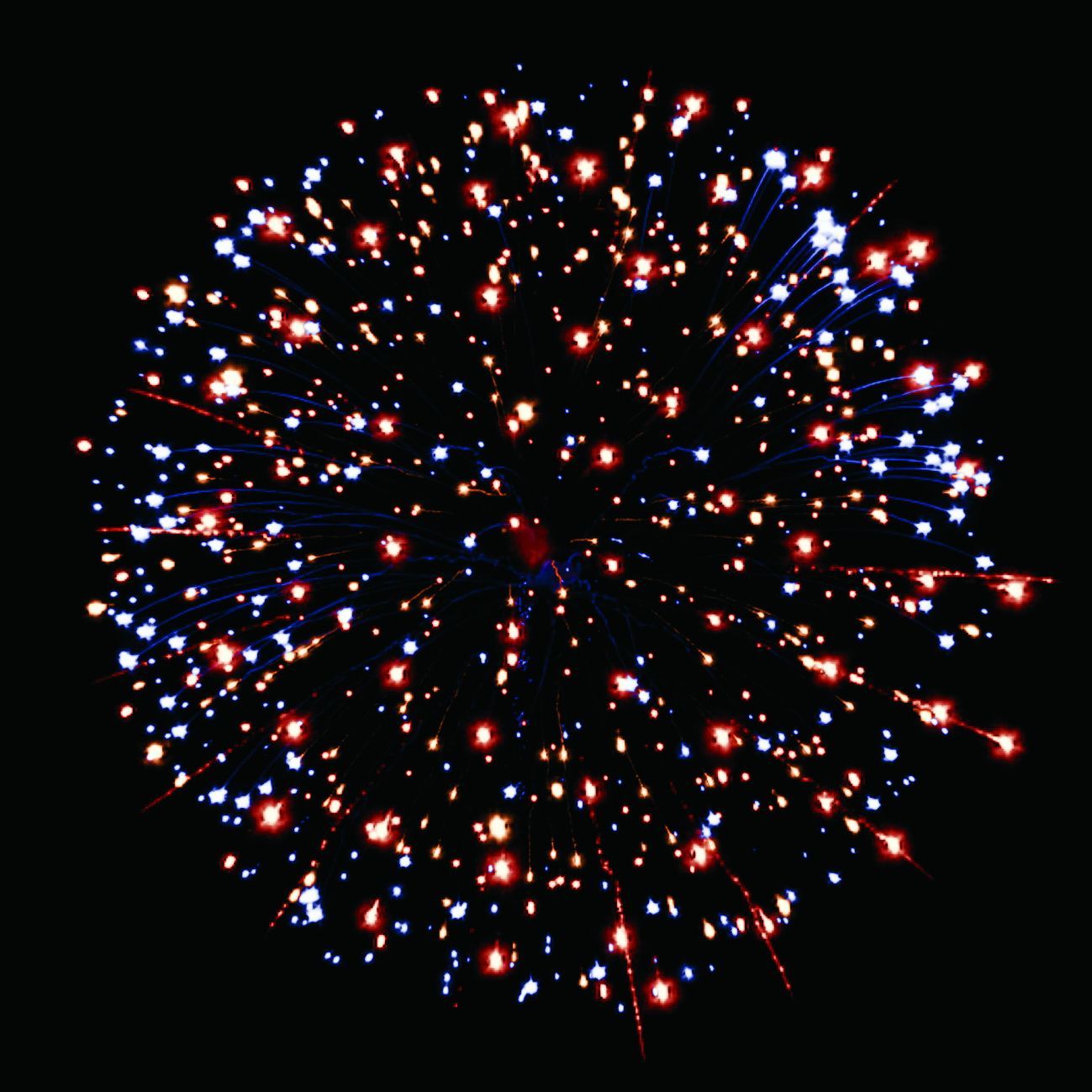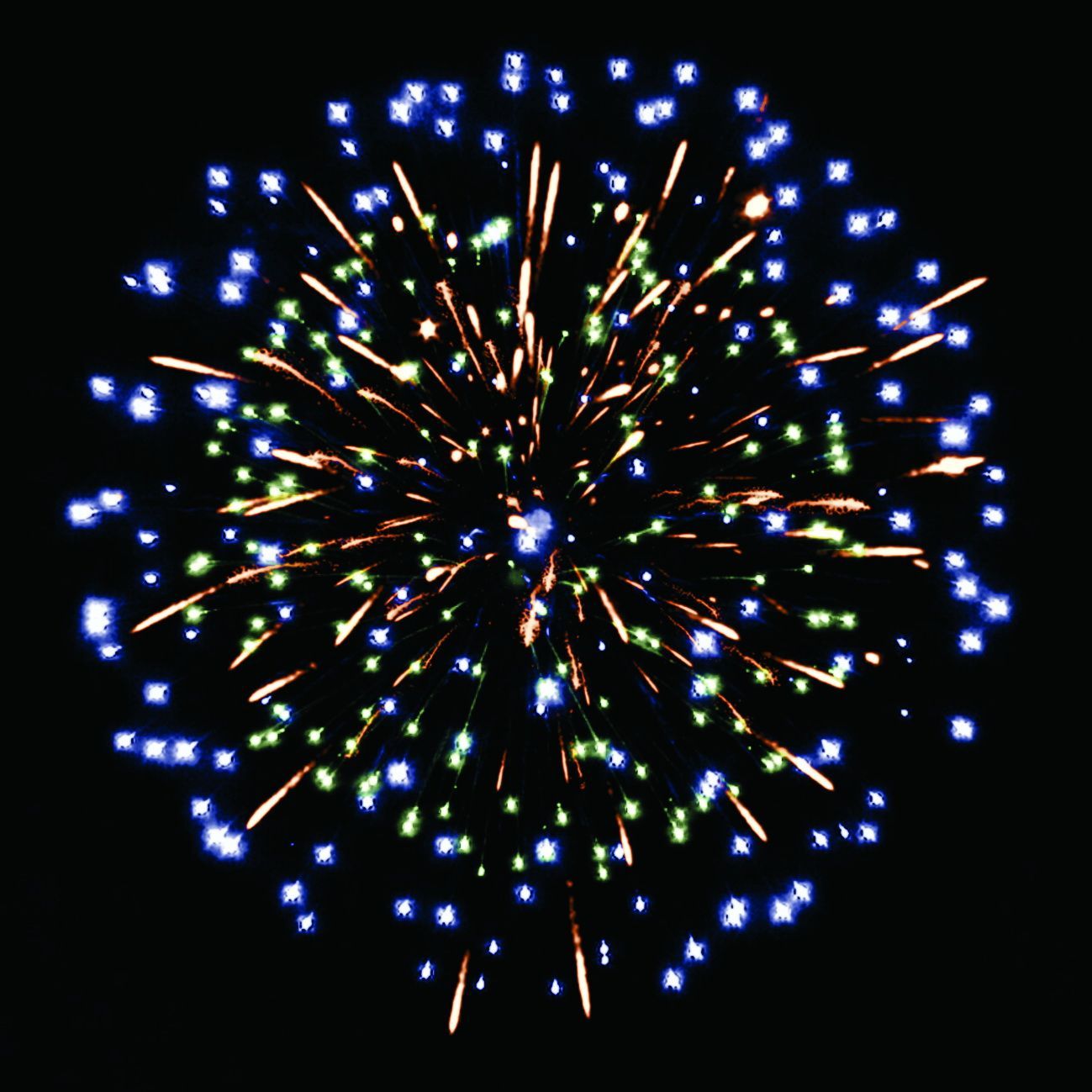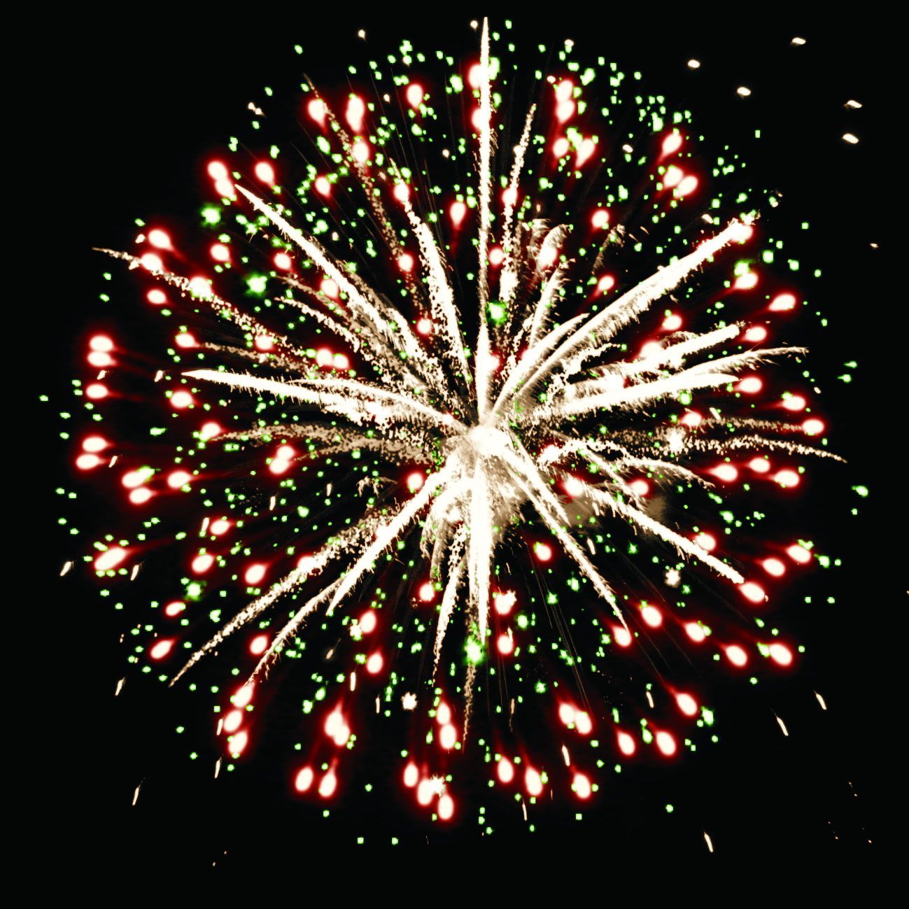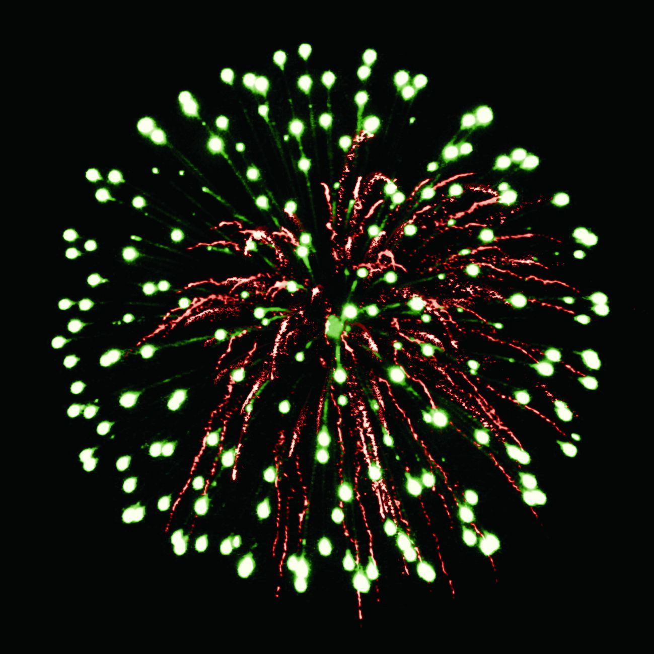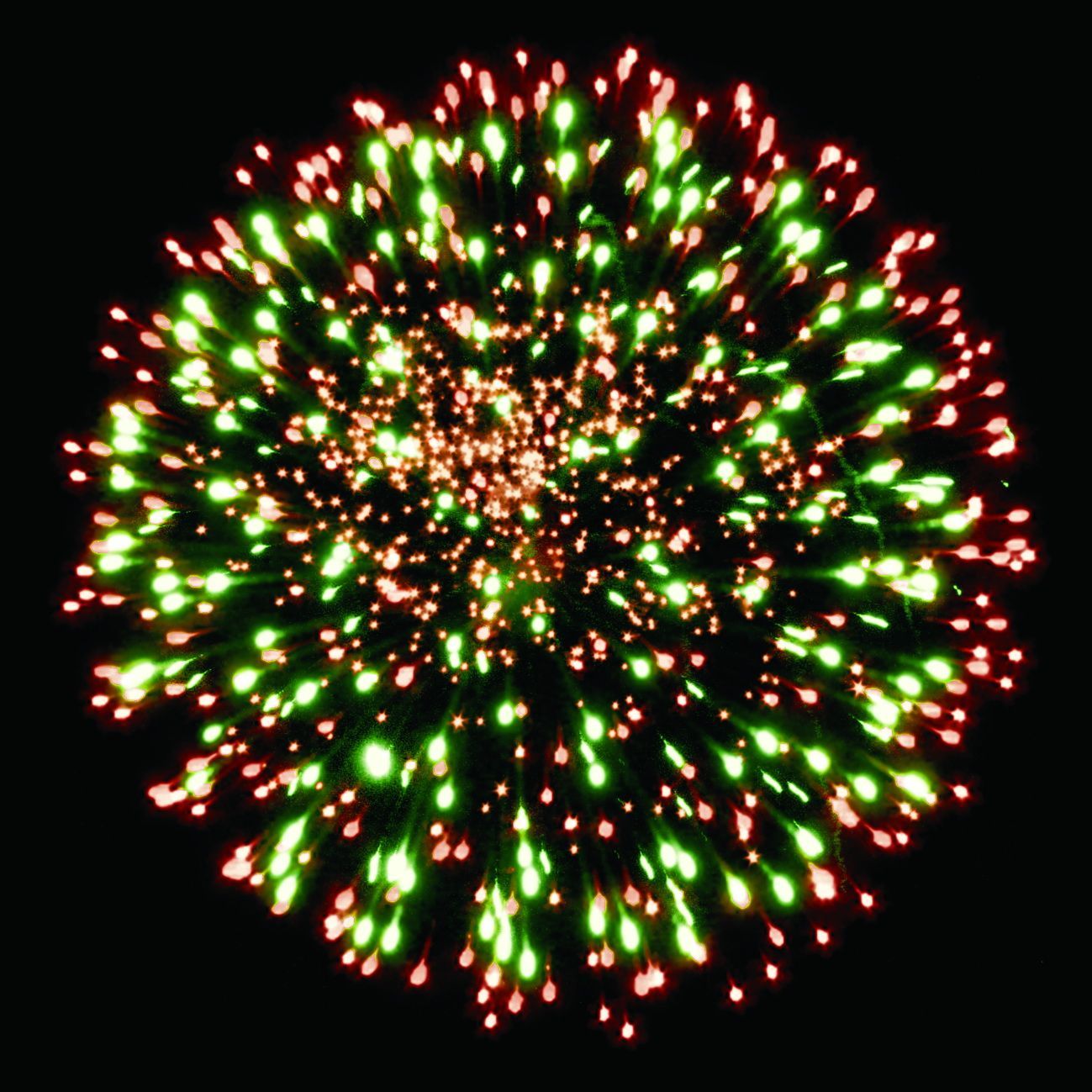 23-24. Веер. Сферы из серебряных форсов и красных, зелёных огней.