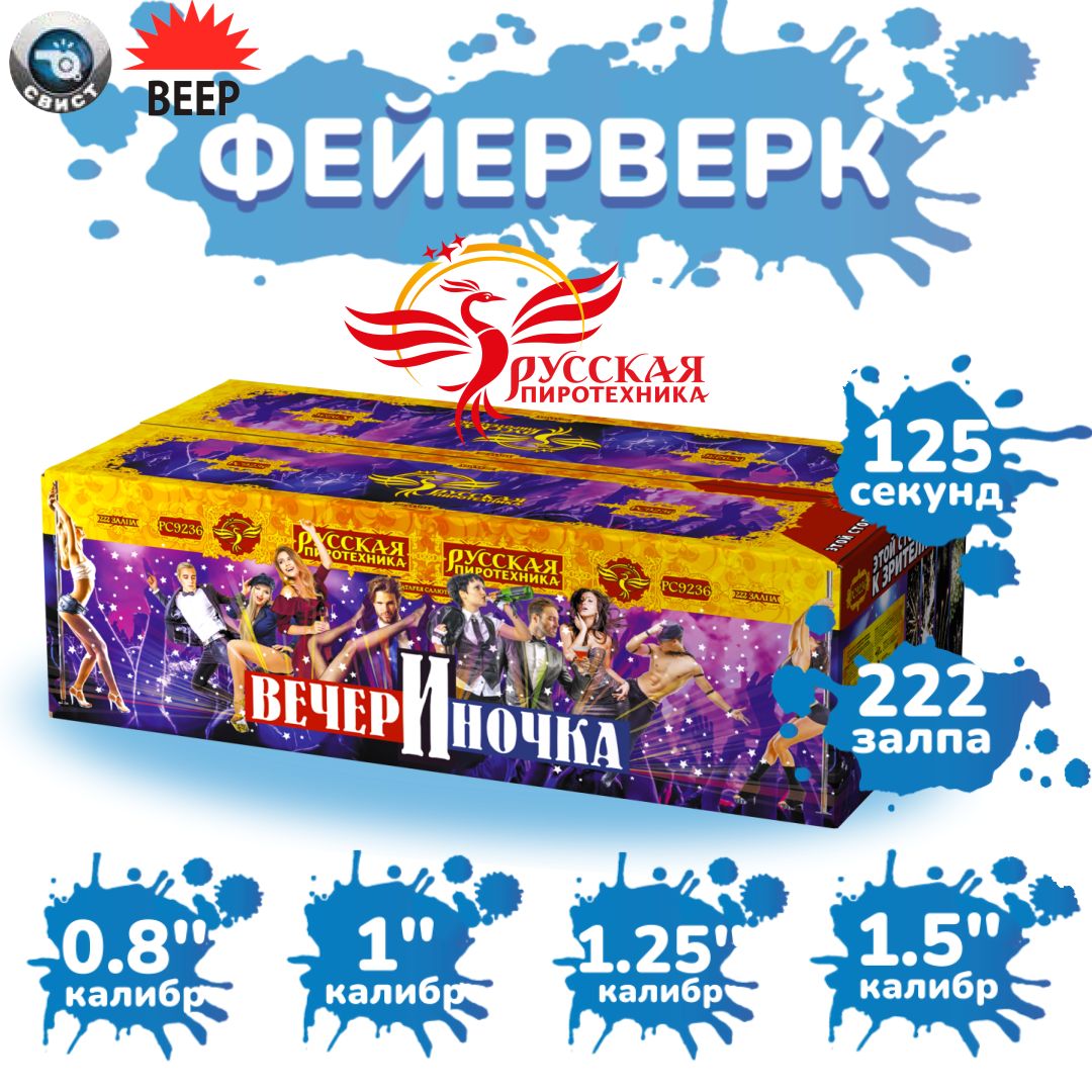 Двухуровневая веерная батарея салютов "ВечерИночка" от "Русской пиротехники" - это идеальный способ создать красочную и волшебную атмосферу для празднования любого особого момента. Она оставляет незабываемые впечатления своей яркостью и великолепием, заставляя Вас поверить в чудеса и магию.Эффекты (изображены на картинке):Нижний уровень.Букеты из серебряных мерцающих, синих огней.Верхний уровень.Разноцветные кометы, свистящие элементы, золотые с мерцающими красными, зелёными, золотыми, серебряными искрами, с серебряными трещащими мерцающими искрами, зигзагообразные искристые трассы разрываются сферами из:
