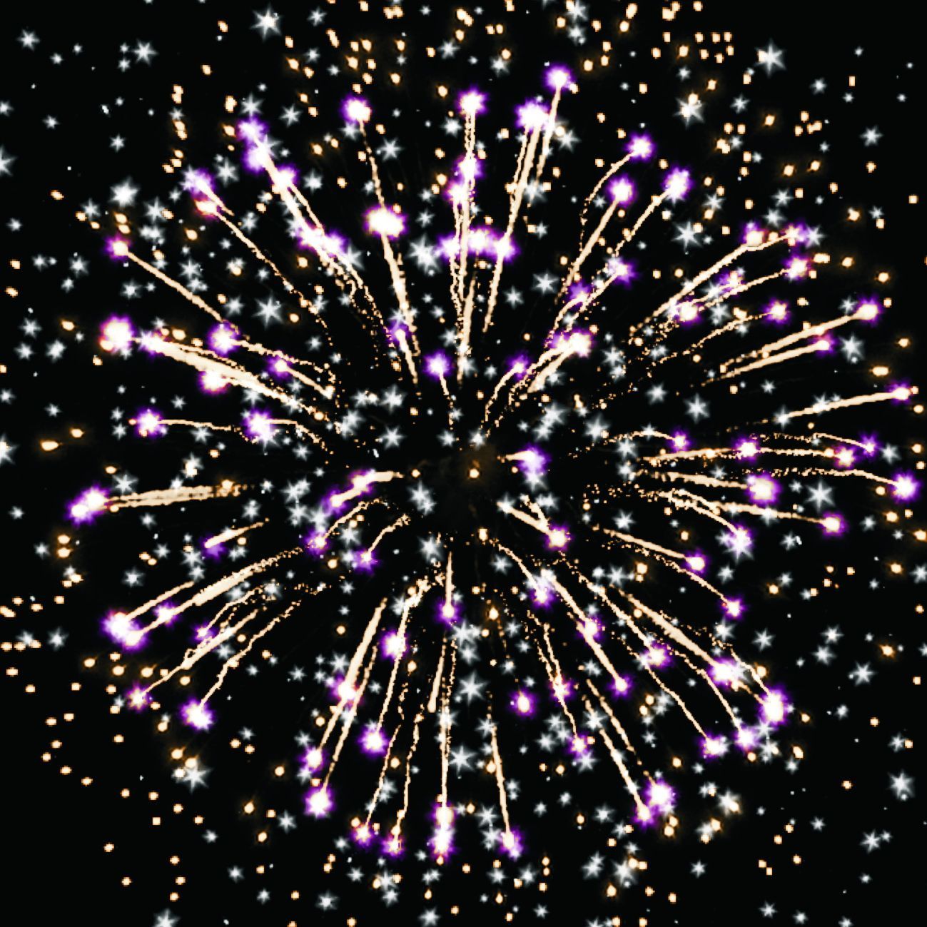 2. серебряных форсов с фиолетовыми огнями на концах, оранжевых и белых мерцающих огней;