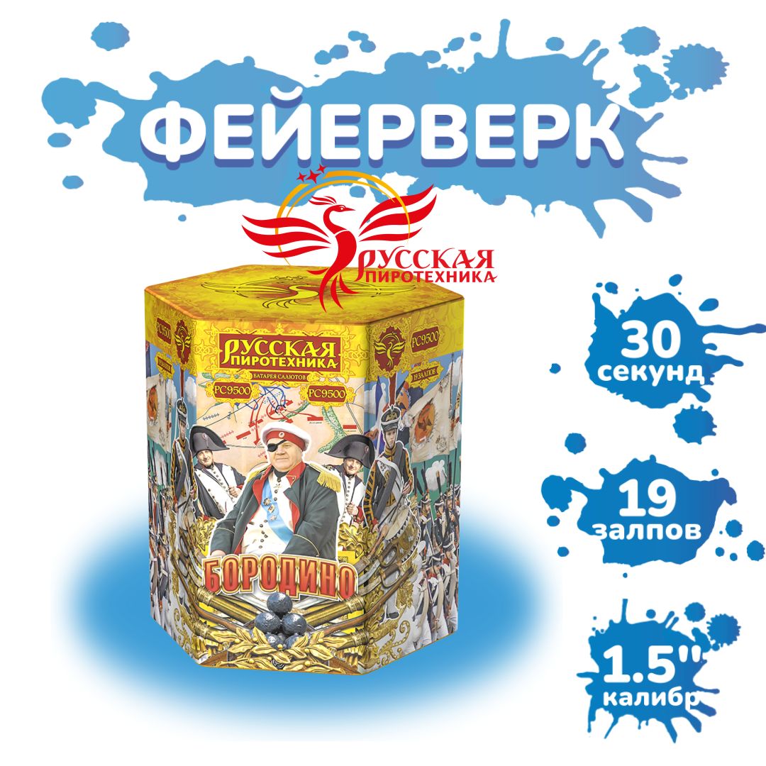 Бородинская битва является одной из самых значимых и кровопролитных сражений в истории России. Она происходила на поле Бородино, недалеко от Москвы. Русская армия смогла задержать французскую армию и нанести ей значительные потери. Это сражение стало поворотным моментом в Отечественной войне, так как оно показало, что французская армия не является непобедимой.А еще, "Бородино" - это крупнокалиберная двухуровневая батарея салютов от "Русской пиротехники", которая по-настоящему украсит Ваше торжество, будь то свадьба, юбилей, день рождения, корпоратив или любой другой праздник. Эффекты (изображены на картинке):Нижний уровень.Букеты из белых мерцающих, синих огней.Верхний уровень.Разноцветные кометы разрываются сферами из: