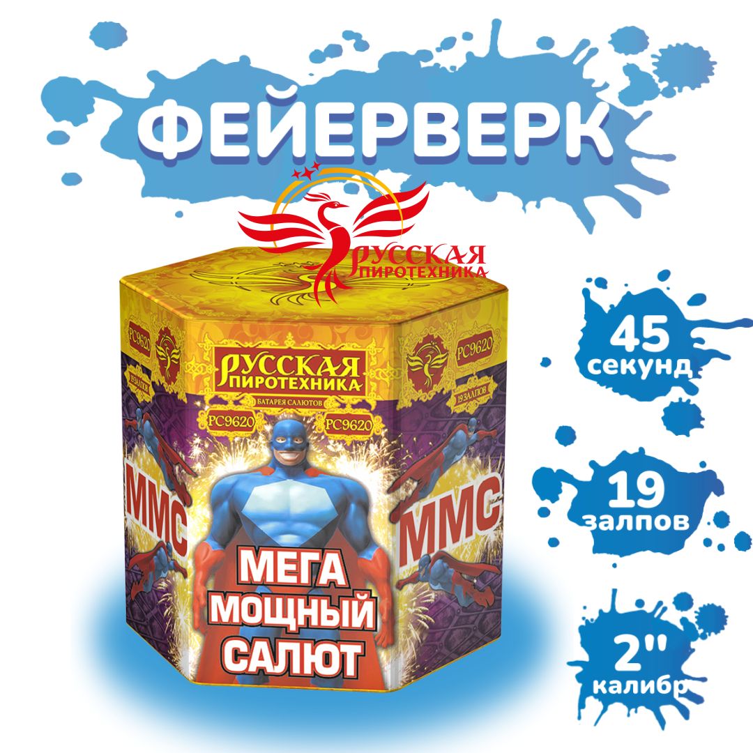 Подарок любителям крупнокалиберных фейерверков от "Русской пиротехники"! Да, в нем всего лишь 19 залпов - но какие это залпы! Каждый накроет небо огромным огненным куполом, приводя всех зрителей в состояние восторга...Захватывающее и красочное событие, которое поражает зрителей своей мощью и красотой. Взрывы огненных шаров, разноцветные огни, яркие вспышки и треск пиротехнических эффектов создают неповторимую атмосферу праздника и восторга.Фейерверк "ММС: Мега Мощный Салют" - это настоящее произведение искусства от "Русской пиротехники", объединяющее людей и приносящее радость и восторг всем, кто его видит.Эффекты (изображены на картинке):Разноцветные кометы, золотые искристые трассы разрываются сферами из:
