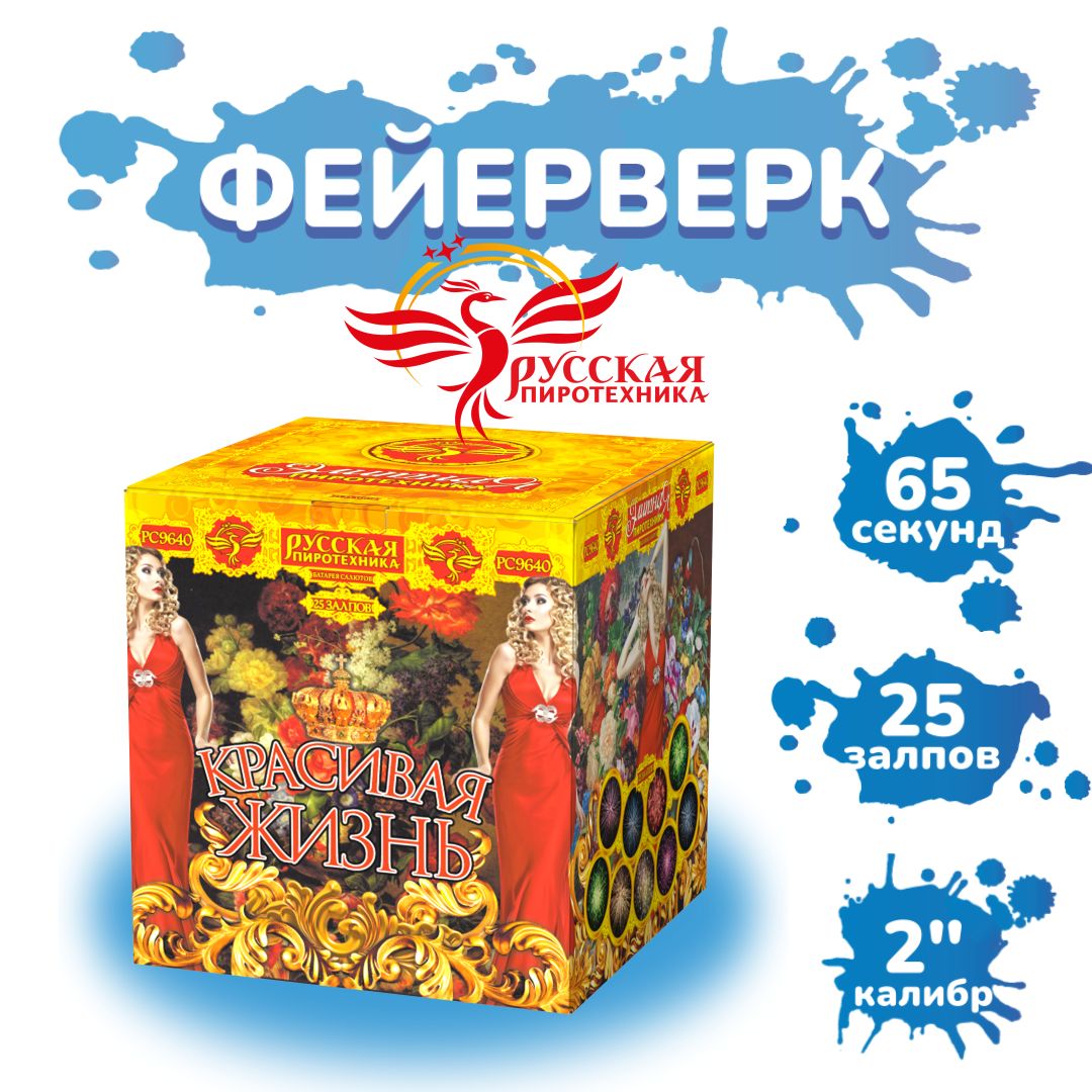 Красивая жизнь, для каждого человека своя. Многие связывают это определение с финансовым благополучием, когда человек может позволить себе купить практически все, что захочется. А для других, красивая жизнь, это любимая жена, любимый ребенок, ну и некоторая финансовая стабильность. Крупнокалиберную батарею салютов "Красивая жизнь" могут позволить себе и те и другие, а удовольствие получит каждый без исключения Настоящее произведение искусства от "Русской пиротехники"! Эффекты (изображены на картинке): Разноцветные кометы разрываются сферами из: