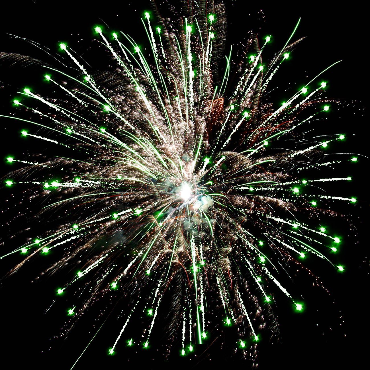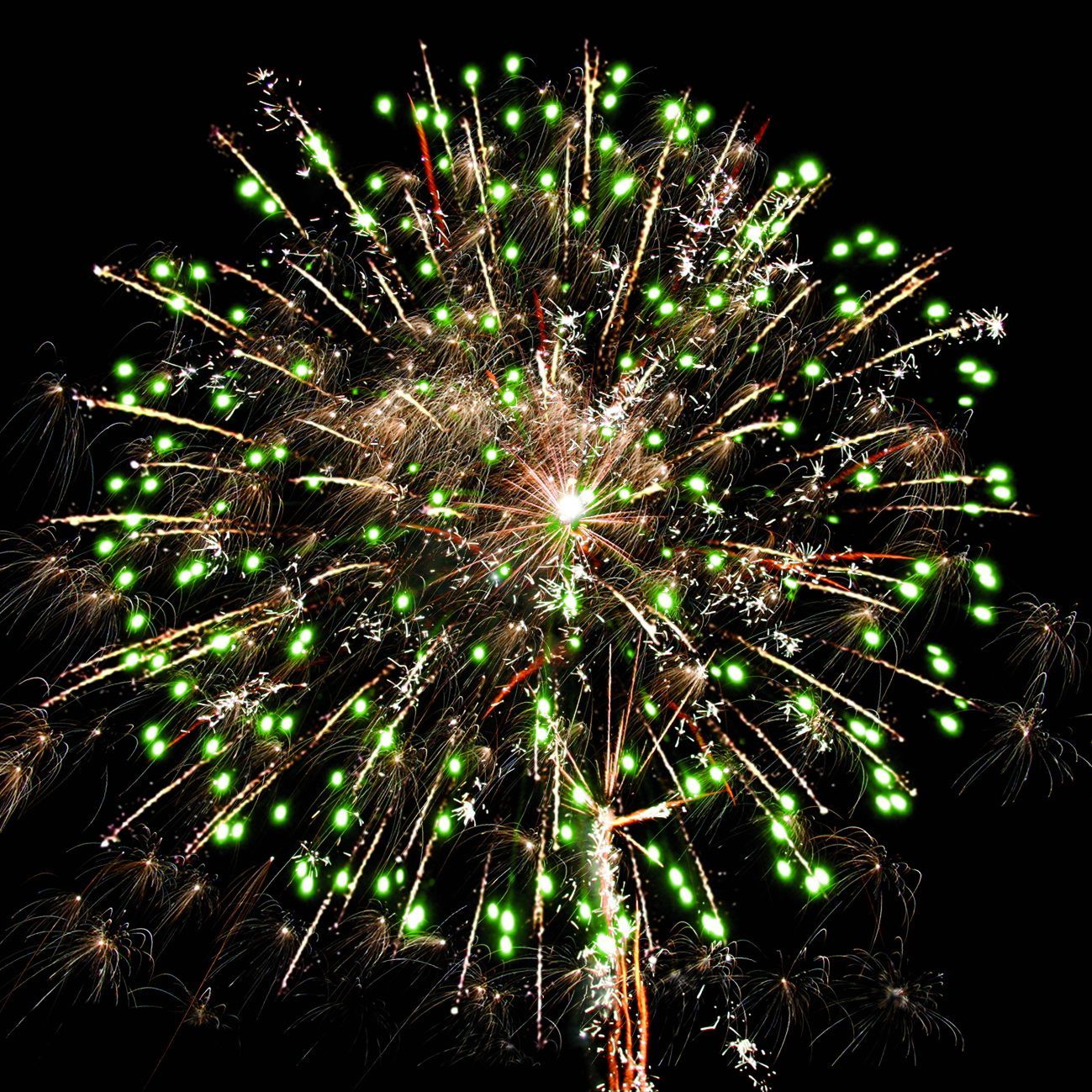 2. зелёных огней и золотых форсов с шуршащими искрами;