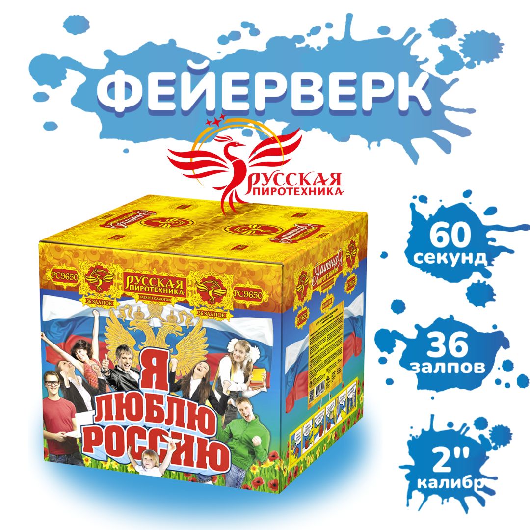 Салютная батарея "Я люблю Россию!" создана для всех патриотов нашей Родины, для тех, кто не боится заявить об этом в полный голос! И совсем не случайно для фейерверка с таким названием была взята именно мощная, красочная двухдюймовка. Эти гулкие взрывы, яркие краски, впечатляющая высота - достойно прославляют имя страны - Россия!Невероятно красочное и впечатляющее зрелище от "Русской пиротехники", которое наполнит ваш Новый Год радостью и патриотическим духом. Каждый выстрел сопровождается яркими вспышками разноцветных огней, которые расцветят ночное небо в самых красивых оттенках. Красные, белые и синие огни будут танцевать в воздухе, создавая неповторимую картину, символизирующую нашу любовь и преданность России.Но не только визуальная составляющая этой батареи салютов поражает воображение, но и звуковое сопровождение. Громкие трески и потрясающие звуки взрывов создадут атмосферу настоящего праздника и заставят каждого зрителя ощутить себя частью большого и яркого празднования! Эффекты (изображены на картинке): Разноцветные кометы разрываются сферами из: