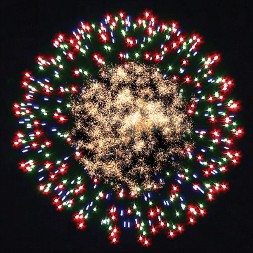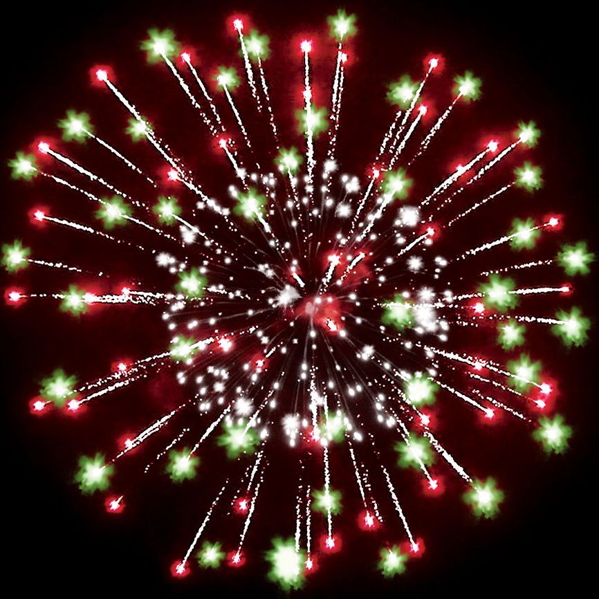 3. Сфера из серебряных форсов с красными и зелёными огнями на концах и с белым мерцающим центром.