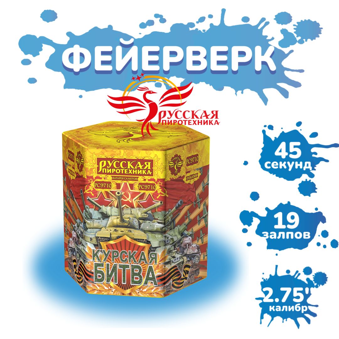 Сражение продолжалось почти два месяца и стало одним из самых кровопролитных в истории. Обе стороны понесли огромные потери, но советские войска смогли отразить немецкое наступление и перейти в контратаку. Крупнокалиберная батарея салютов "Курская битва", очередной шедевр от "Русской пиротехники". Это захватывающее и красочное шоу, воссоздающее сцены и события, происходившие во время Курская битвы. Салют представляет собой смесь ярких цветов, взрывов и звуков, которые передают атмосферу ожесточенных боев и героизма советских солдат.Фейерверк начинается с мощных взрывов, символизирующих начало битвы. Затем на небе появляются разноцветные огни, изображающие артиллерийские удары и авиационные атаки. Взрывы и световые эффекты создают ощущение реального сражения, погружая зрителей в атмосферу этой великой битвы! Эффекты (изображены на картинке):