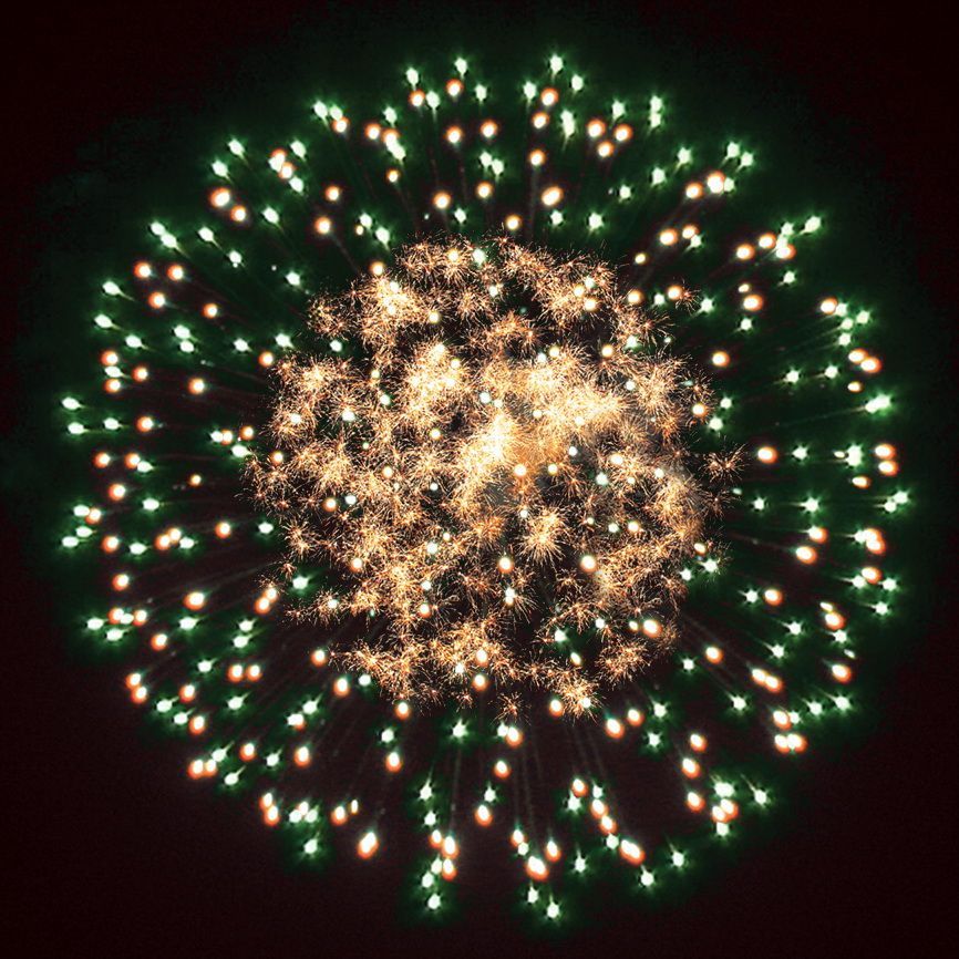 Великой исторической фигуре должен быть посвящен самый грандиозный и мощный салют. Что же, можем констатировать, что мастера фейерверочных искусств из "Русской Пиротехники" не ударили в грязь лицом! "Петр Великий" - поражающий воображение своей мощью салют невероятного, огромного калибра 2,75 дюйма.Каждый залп фейерверк - как залп Царь-Пушки: еще долго отдается эхом, а небо будет полностью закрыто сияющим дождем золотых и разноцветных искр, комет, трасс и мерцания. Воинская слава, победы, достижения России при Петре 1 - все это получило достойное воплощение в огромной и мощной батарее "Петр Великий".Позвольте себе окунуться в историю и величие России! Вы испытаете радость, удивление и ощущение, что вы стоите рядом с великим императором.Эффекты (изображены на картинке):